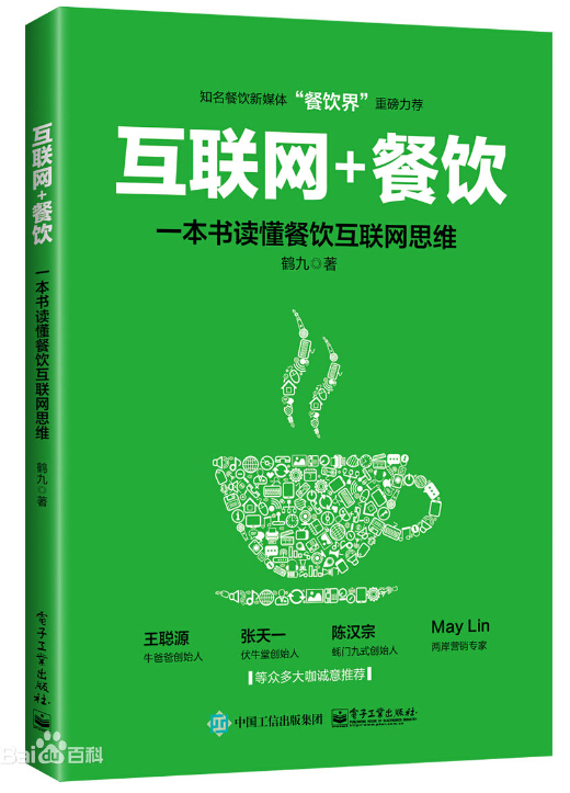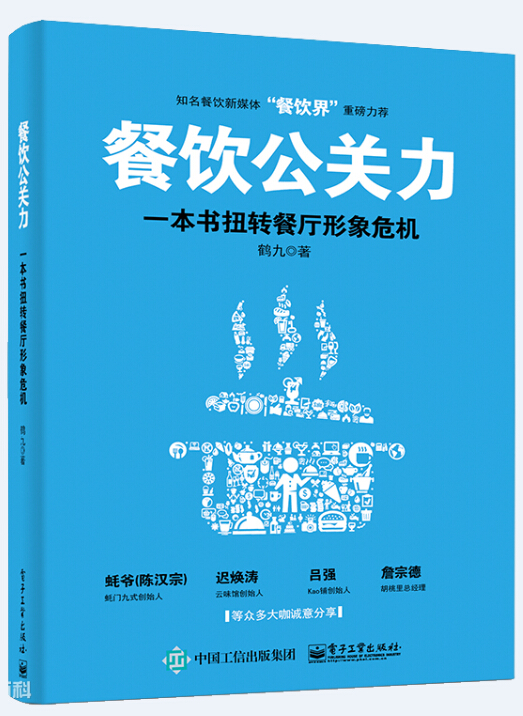 鹤九,用了近5年时间潜心研究餐饮互联网思维应用,尤其是在新媒体环境下餐饮品牌公关力的构建,著书两本,分别为《互联网+餐饮,一本书读懂餐饮互联网思维》和《餐饮公关力,一本书扭转餐厅形象危机》,由电子工业出版社。