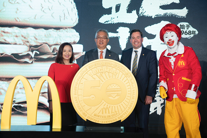 麦当劳中国2018年8月3日宣布,将与全球同步庆祝经典产品巨无霸50周年,送出一套五款巨无霸收藏币MacCoin,供粉丝分享与收藏。2018年8月6日周一,中国内地超过2500家指定麦当劳餐厅将送出超过100万枚MacCoin。顾客凭MacCoin可以在全球超过50个国家和地区的麦当劳餐厅免费兑换巨无霸一个。