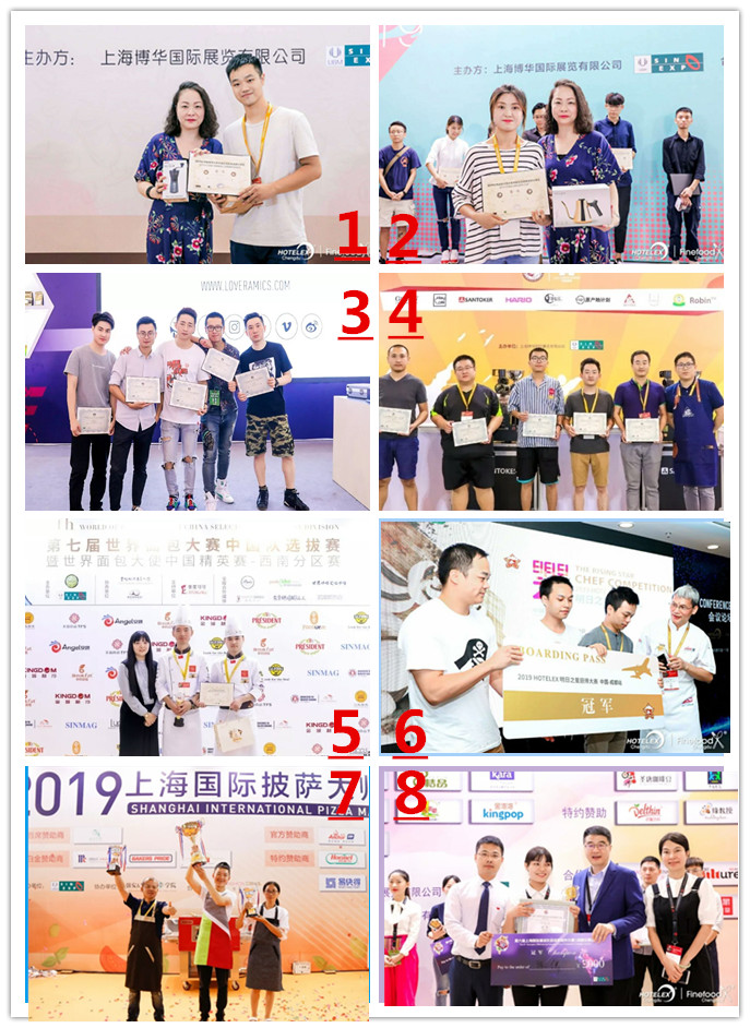 上海国际披萨大师赛是由上海博华国际展览有限公司主办,旨在推动披萨行业在中国的发展、促进披萨产品创新、传播披萨知识文化、发现披萨优秀人才,为中国职业披萨厨师提供表演、竞技和交流的平台。刘建东、张孟全、张建芳(下图7)分获2019上海国际披萨大师赛西南赛区三强资格,他们将代表西南地区参加2019年4月举行的全国总决赛。