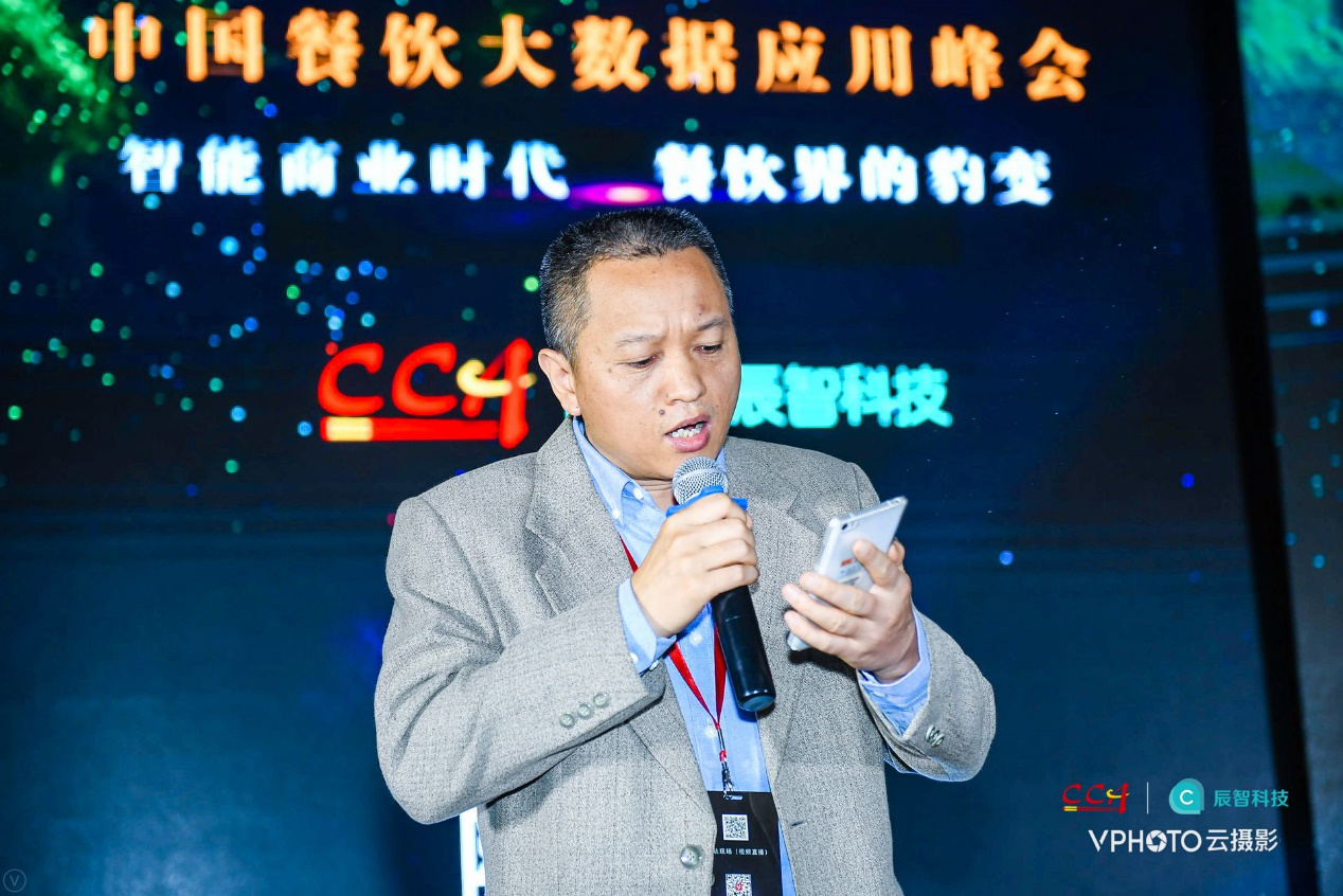 辰智科技创世人/CEO葛建辉先生做了主题为“数据驱动餐饮企业管理创新和智慧决策”的精彩演讲,演讲开始,葛建辉先生提出一个未来餐厅长啥样的思考,连举三个案例告诉大家一个帮助大家实现真正数字化运营的扫码点餐动作,他说因为扫码点餐,前厅服务、后厨管理、菜品饮品、顾客行为、零售电商,这一切的数据都被记录并链接在一起,这将让一个传统的经营空间的餐厅,把所有的顾客流量以及这些顾客行为都数字化和在线化,这样的餐厅将拥有无限想象空间。他表示2015-2025将是餐饮数据化的10年,一家餐厅所有的事情都将被数据标签化,大数据正在帮助餐饮企业实现创新的管理方式和智慧的决策模式,餐饮将会集团化并购整合,强者俞强,特色经营将成就小而美,爆品创业成就品类霸主,三年窗口期后商机不再,流量平台的运营能力将左右一家餐厅的业绩好坏,数字化运营能力的高低将餐饮企业两极分化,数据化处理能力可以将传统经营的企业一步步升级为区域龙头、品类霸主或是餐饮航母。
