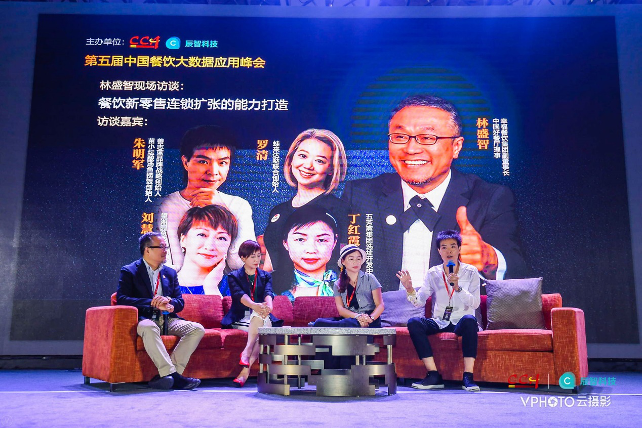 幸福餐饮集团副董事长、中国好餐厅理事林盛智先生主持了此次现场访谈活动,参与访谈的还有望湘园总经理/联合创始人刘慧女士、五芳斋集团选址开发中心总经理丁红霞女士、苗小坛酸汤鱼捞饭创始人、善志蓝品牌战略创始人朱明军先生,他们以自身经营企业为例探讨了餐饮新零售连锁扩张的能力打造。