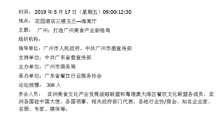 欢迎参加广州亚洲美食节·分论坛二“美食与产业发展”活动