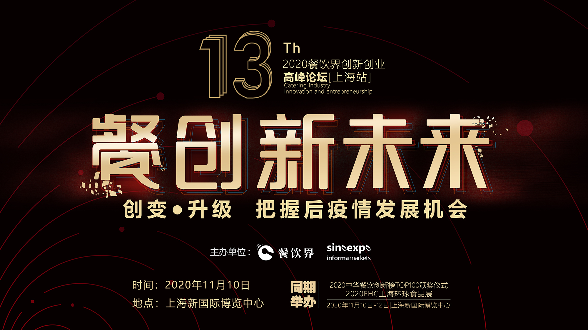 11月10日,餐饮界新媒体携手上海博华举办“餐创新未来”暨第13届餐饮界创新创业高峰论坛,特邀请了行业较具影响力的创新品牌、机构、行业专家进行“ 创变-升级”主题的分享和思想碰撞,与500+餐饮同仁一道, 在这场“ 后疫情革命中”创造并把握机会。
