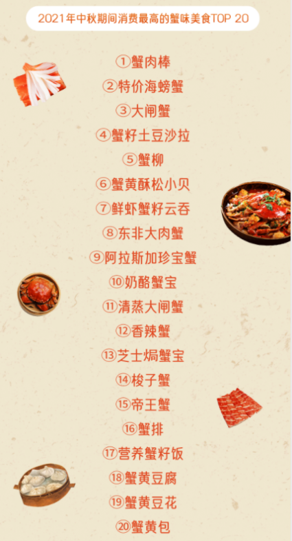 哗啦啦大数据:2021中秋假期,“蟹味”餐饮消费在外卖点单量同比增长28%头条