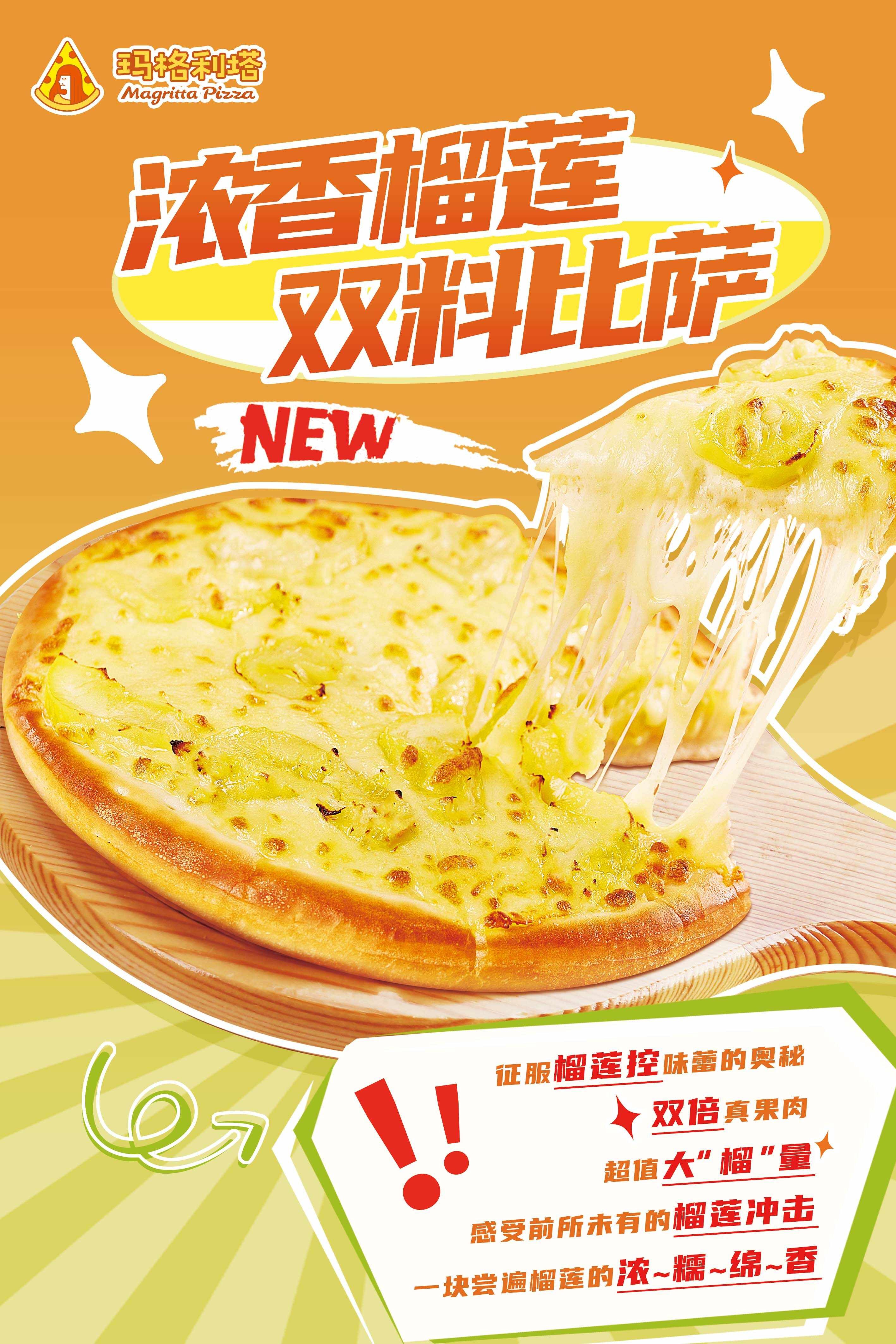 榴莲披萨作为一款经典创新披萨,这些年霸占了各大披萨帮榜单前三,榴莲披萨的盛名也在于榴莲果肉,所以这一次玛格利塔推出的浓香榴莲双料披萨,真是大大满足了榴莲控们。