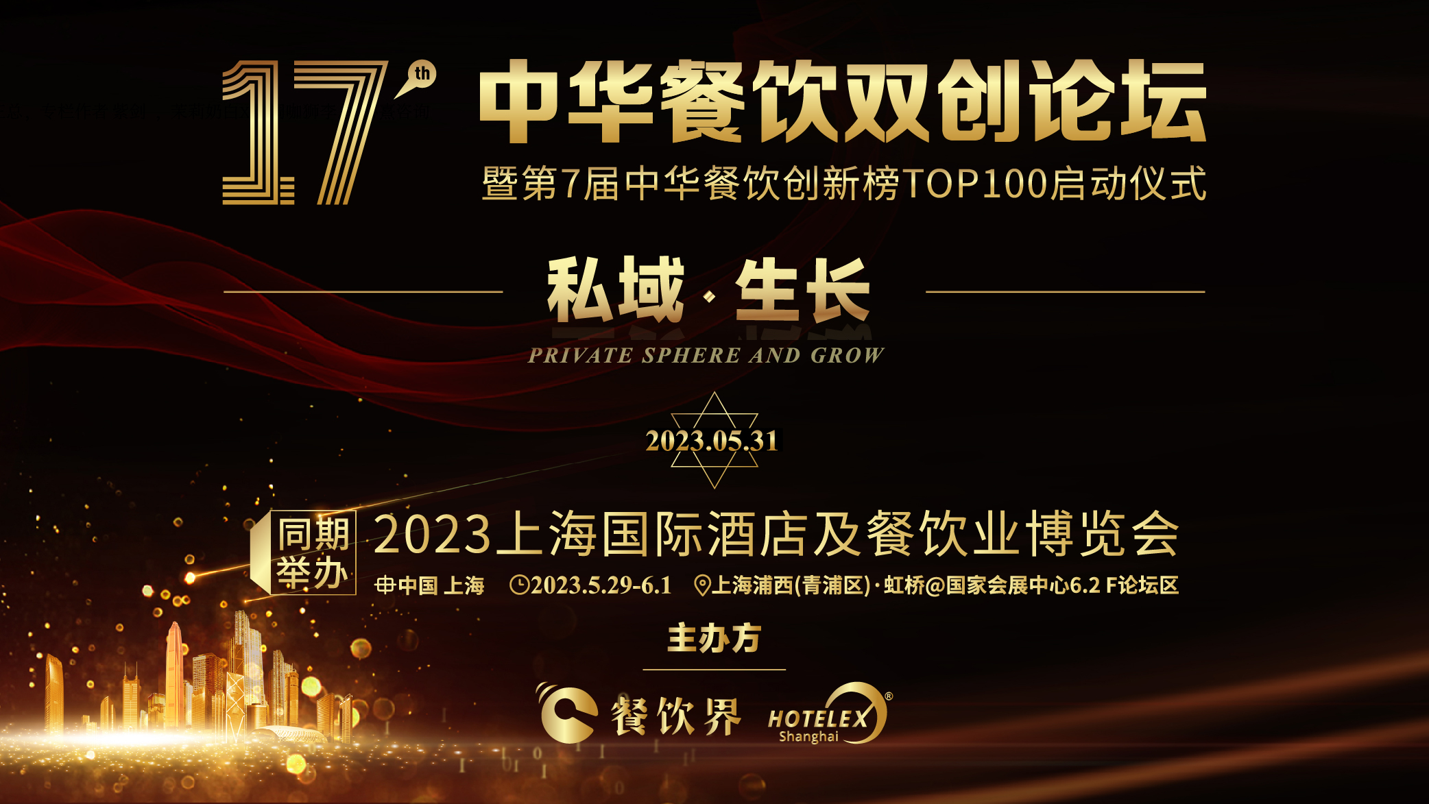 2023年5月31日,餐饮界新媒体持续打造“中华餐饮双创论坛”IP,将于上海国家会展中心举办“私域-生长”暨2023第17届中华餐饮双创论坛。