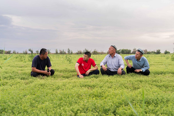 在与当地农户亲切交流之后,管氏翅吧创始人管其兵深入田埂,在一株株孜然植株间考察当季孜然的产新情况。5月底的孜然种子呈现嫩绿色,粒粒饱满,散发着独特的香气。管其兵轻抚着孜然植株嫩绿色的叶片,并不断询问关于孜然生长情况的细节。“往年这时候已经在收割了。”当地农户依力哈木大叔向他介绍到,“今年闰二月,孜然生长期延迟,长势也更加喜人,估计今年是个好收成!”言语之间,依力哈木大叔脸上泛出淳朴而快乐的笑容。