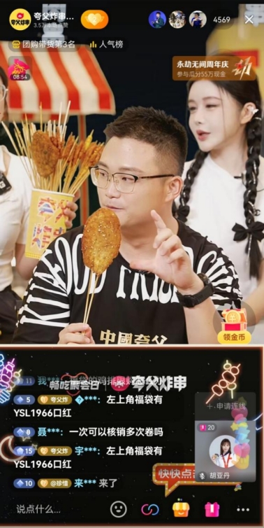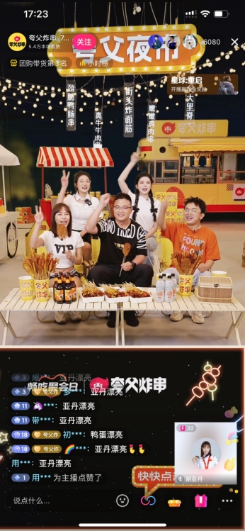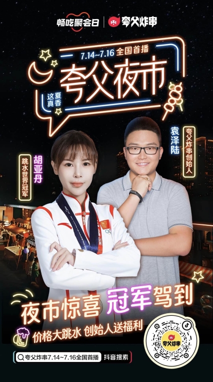 夸父炸串先后被金星、华少等明星直播间选品团队看中,并进入明星直播间热卖;本次直播中,世界冠军胡亚丹惊喜现身夸父夜市,与夸父炸串创始人袁泽陆先生共话乐山美食,胡亚丹在现场大口撸串,盛赞夸父炸串的巴掌大鸡排“每一口都Q弹拉丝、越吃越想吃”。要知道,运动员对于食物的要求极其之高,这也从侧面印证了夸父炸串的产品品质经得起最极致的验证。夸父炸串还吸引了密子君、小方不是小芳等一众头部达人主播,成为明星、达人、世界冠军都爱的小吃炸串品牌。
