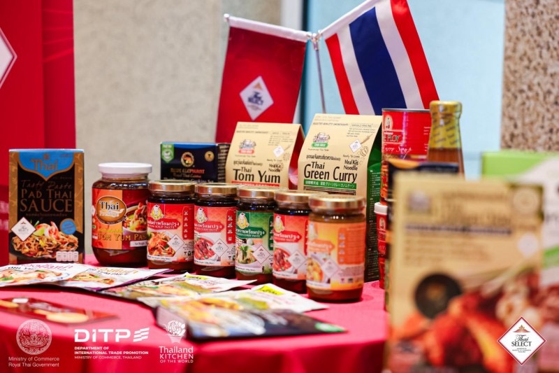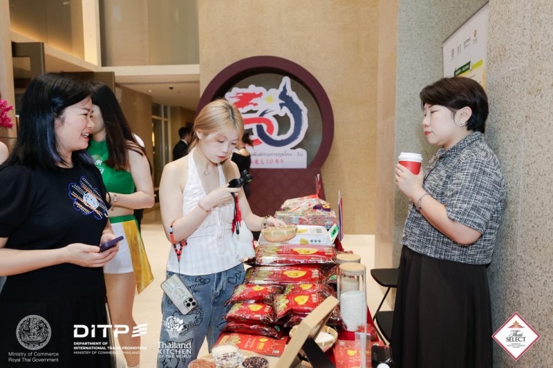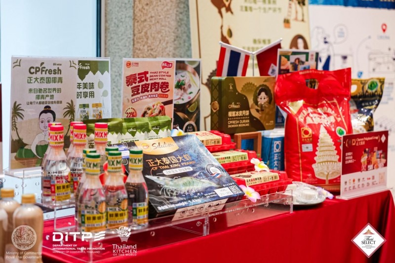 抽奖结束后的大厅内,一场别开生面的长桌展洽旋即登场。中泰商会、泰国馆集团、正大集团、大象啤酒等十余家泰国知名食品企业及机构代表齐聚一堂,在精心布置的长桌展位前,向与会的中方餐饮精英、行业伙伴和媒体展示了涵盖泰国香米、调料、饮品等在内的丰富食材与特色商品。展洽现场气氛热烈,供采双方围绕产品特性、供应链合作、市场推广等议题展开了自由而深入的交流与对接,为后续中泰餐饮产业链的深化合作与泰国美食在华的长远发展构建了高效的沟通桥梁。