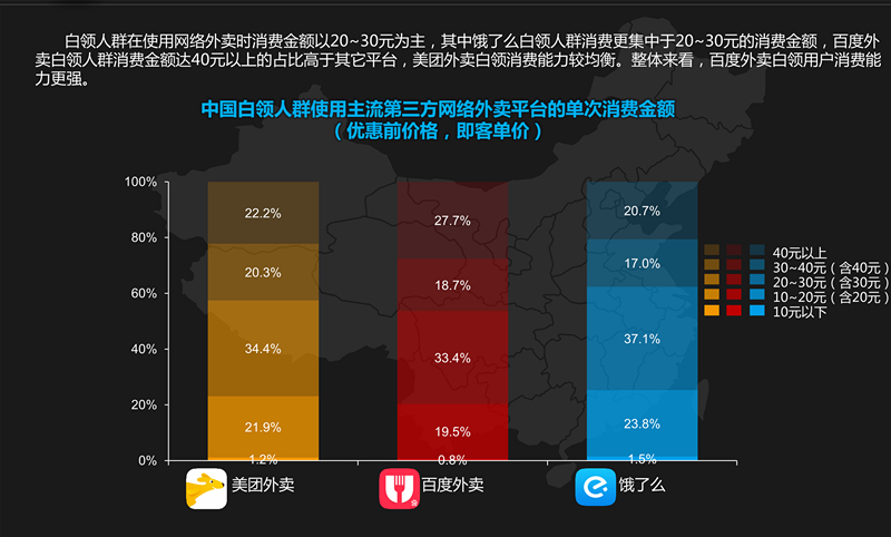 外卖O2O对于白领用餐选择来说是一个巨大的增量,在早期只能就近用餐的时代,白,但是外卖O2O开启后,同样的价格可以领们只能够选择距写字楼较近的餐饮店面选择更为多元的餐厅。