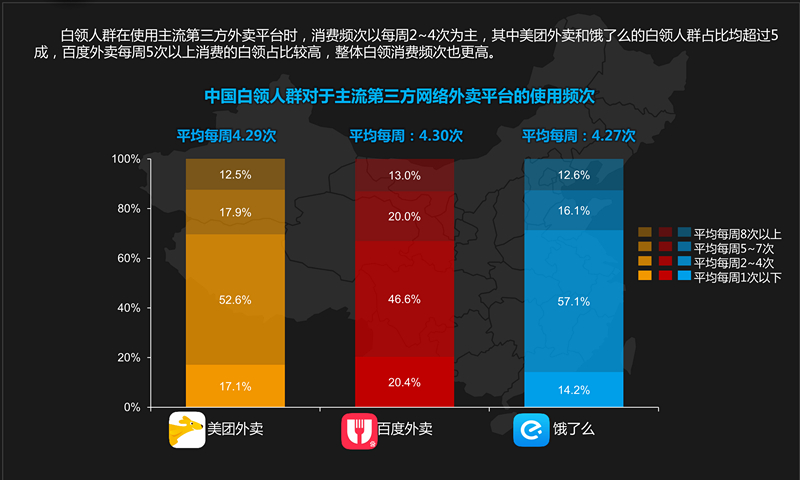 相比较其人群,白领用户对外卖平台有更高的黏性,并且随着外卖平台产品与服务不断的成熟完善,这部分用户将会变成最为忠诚的原始用户。