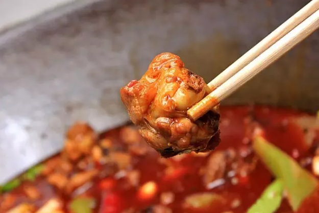 柴火鸡主要食材为原生态的跑山鸡,相比于城市里的饲养鸡,口感鲜味遥遥领先。师傅先将新鲜的鸡肉在锅中翻炒,哗啦啦的声音伴随着阵阵香味,看生肉都有一种想吃的感觉。七八分熟之后转到各个桌上的大油锅中,这个时候大家可以按照自己的口味放入辣椒和酱料,盖上锅盖焖5分钟,再打开锅,浓香四溢!鸡肉细嫩一点不渣,焖后的酱汁变得浓稠,包裹着鸡肉,一口咬下去整个人都暖了。