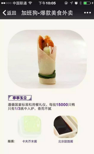 据了解,小鸭哥全聚德手作鸭卷此前已经在重庆的加班狗互联网餐厅上试跑了半年,春节前开始又在北京地区进行了公测,获得了较高评价。目前好评率达到了98%。