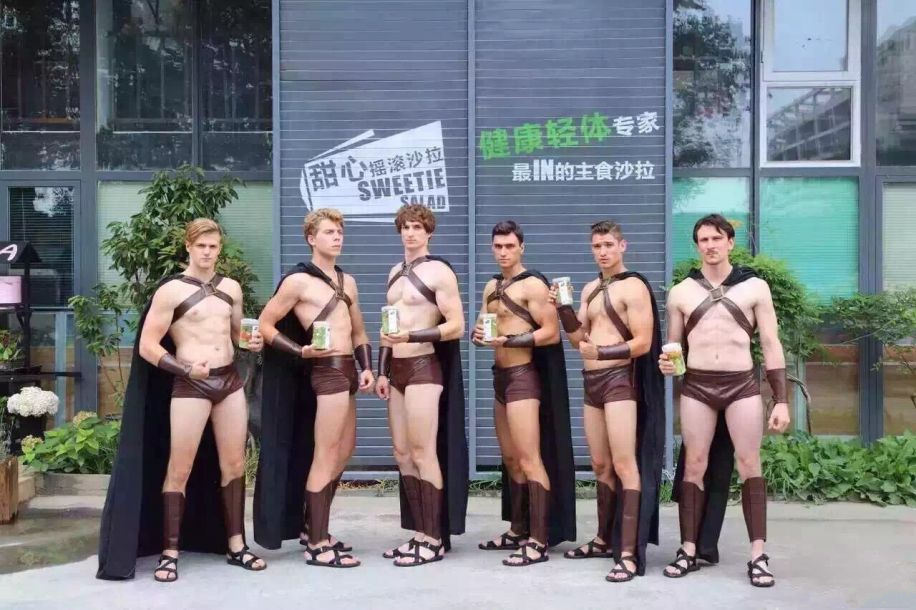 谈起“甜心摇滚沙拉”这个名字,多数人都感到陌生,但提起“斯巴达勇士”闹京都一事,估计多数人还是略有耳闻的。2015年7月,“甜心摇滚沙拉”为庆祝周年庆筹划了一系列活动,其中邀请外国身材健美的男模送外卖便是活动之一。