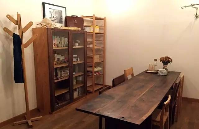 现在,进门最左边的一间单独用作烘焙工作室,让中岛能更专心制作咖啡;院子和最右边的屋子作为顾客坐席区,都摆着木制长桌子和椅子;而中间的横条屋子成了器物展销区,各种各样的杯子、碟子等被搭配着摆在木桌上。