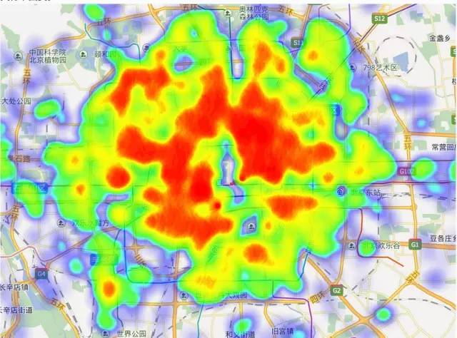 朝阳公园周边、西直门商圈、东大桥周边、大望路周边的人群密集度稍有减弱。