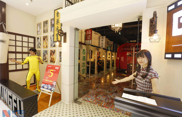 店门口的李小龙蜡像,菜单变成了剧本,收银台变成了售票处,香港的火车站候车厅等一个个香港电影经典拍摄场景,让食客都穿越回了上世纪90年代香港电影场景里,过足了一把当(pao)巨(long)星(tao)的瘾。