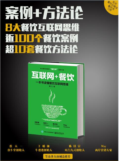 据了解,《“互联网+餐饮”:一本书读懂餐饮互联网思维》一书由“餐饮界”新媒体创始人鹤九所著。该书从实战性出发,深入浅出地为餐饮人揭开互联网神秘莫测的面纱,不仅从战略层面,通过案例剖析“跨界思维、产品经理思维、大数据思维”3大互联网思维如何应用;还从战术层面总结出了“社群思维、参与感思维、炒作思维、自媒体思维、平台思维”5大互联网思维模式。