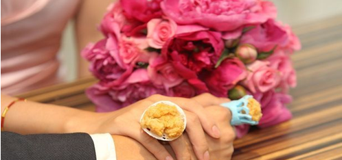 当然,这些只是餐厅其中一部分。更别具特色的是,普通婚礼上送给宾客的喜糖,在这里被一份份打上"KFC×Wedding"的定制全家桶所取代;就连婚礼司仪,也是笑容可掬的"肯德基老爷爷"。