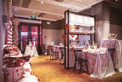 那么,这家不一样主题的餐厅会有什么独特之处呢?浪漫的珠帘,芬芳的鲜花,甜蜜的蛋糕,普通婚礼仪式所能呈现的元素在这里同样一应俱全。据介绍,该餐厅的主色调为红与白,红色在婚礼中代表着满满的爱,而白色则代表着纯洁无暇,为了体现新人的个性和勇敢,还加上了黑色蕾丝大胆碰撞,希望打造一个前卫的轻复古婚宴现场。