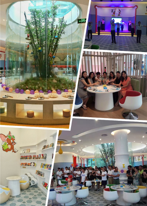 餐厅整体采用明亮绚丽的颜色,设计多个极具变化的奇特造型,用天马行空的想象力,为孩子们营造一个欢乐的儿童世界。此外,餐厅专门设计了包括绘本阅览区、乐高积木区、欢乐小舞台、亲子手工区在内的多个亲子互动区域,满足孩子的好奇心及玩乐心态。让每一个孩子,在进餐的同时,可以在童真世界里自由畅游,享受亲子旅游的乐趣。