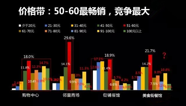 3、邻里商场则是50-60元一枝独秀,大众化的价格,因为地点便捷性以性价比作为主要考虑因素;