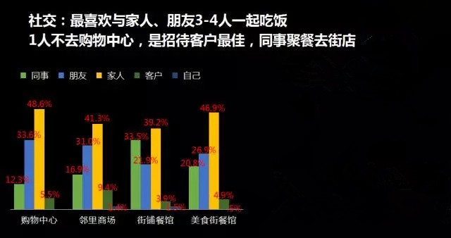 1、无论哪种商圈,最喜欢与家人、朋友2-4人一起吃饭,再次说明餐饮的本质是社交;
