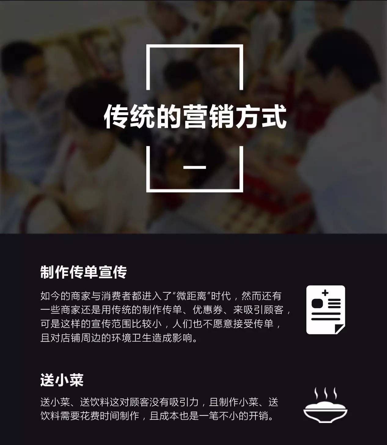 1、促销≠营销,早该摒弃一贯传统的发传单、打广告……传统促销方式只会浪费资源;