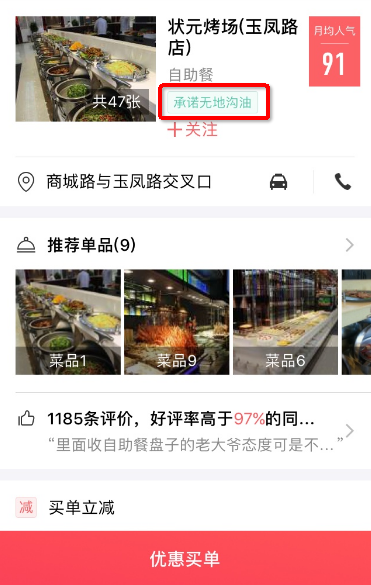 公开资料显示,口碑目前已经接入全国300多个城市的250万商家。今年五月,口碑发起了“无地沟油”行动。对于平台上的餐饮商家,一旦承诺绝对不使用地沟油,其口碑在线店铺会被打上“无地沟油”的标志并重点推荐。