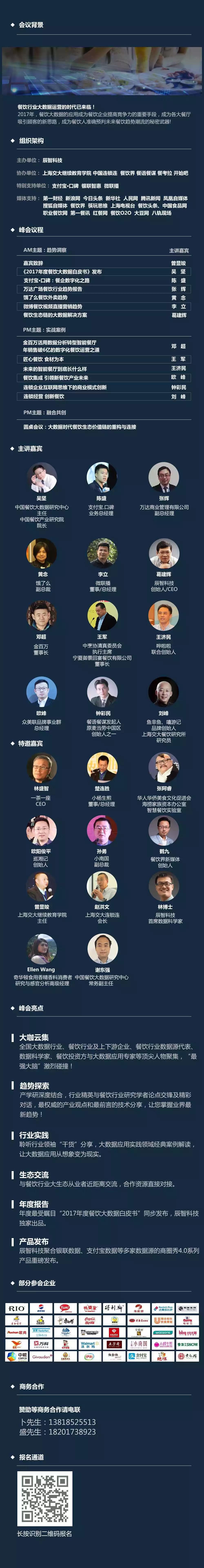 2017年10月26日,由辰智科技主办,上海交大继续教育学院、中国连锁连、餐饮界、餐语餐谋、餐考拉、开始吧等协办,支付宝·口碑、银联智惠、微联播等特别支持,以“大数据时代,餐饮生态的重构与连接”为主题的第4届中国商业大数据应用峰会(餐饮生态专场)将在上海五角场凯悦酒店举行。