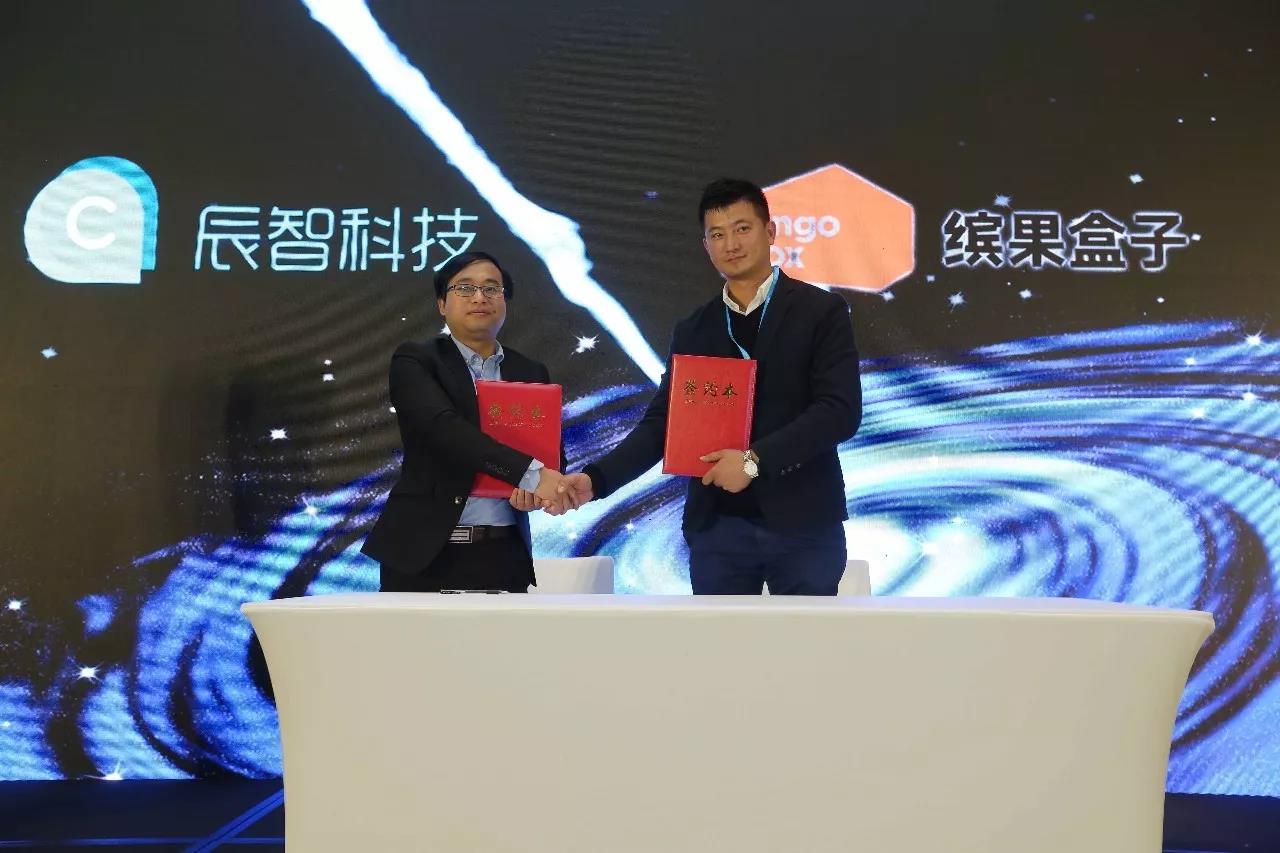 会议现场,辰智科技首席运营官谢东强先生与北京缤歌网络科技有限公司华北华东总经理兼副总裁贾军先生就大数据选址服务达成战略合作并签订大数据选址战略合作协议。