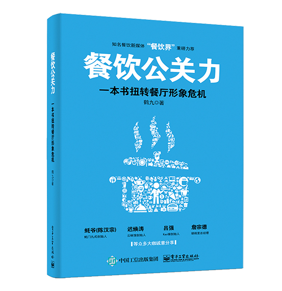 于是,鹤九又将自己在品牌公关策划与传播的经验与知识进行了系统梳理,并结合餐饮行业过往发生的众多案例,撰写了《餐饮公关力》一书。他希望通过概念解读、案例剖析、方法论总结,从势、术、器三个层面,直击餐饮公共关系命脉,帮助餐饮企业全方位修炼餐饮公关力,彻底扭转餐厅形象危机。