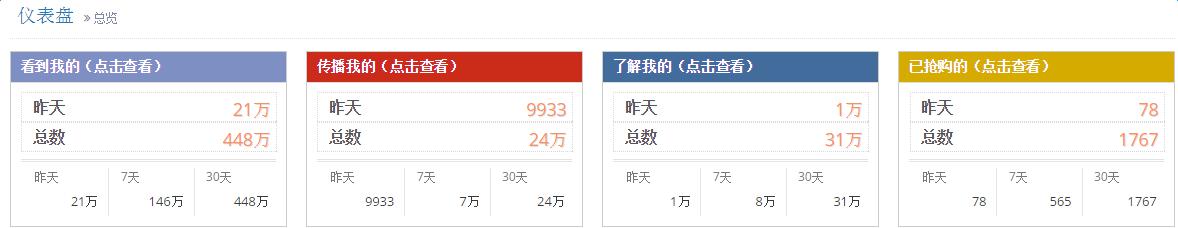 全部实名注册的真实用户,免费提供直观有效的后台数据统计,让你清晰的知道有多少人,在什么时间,在什么位置是看到你、是了解你,还是主动传播你。