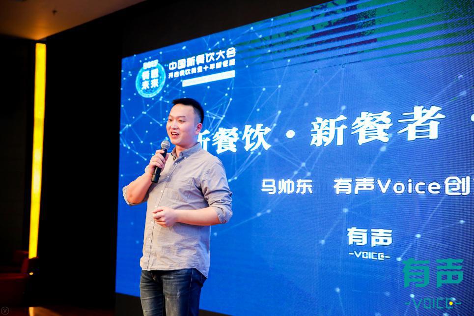 随后,本次大会进入“新餐饮100人启动仪式”环节。作为有声Voice创始人,马帅东上台做阐释,表示这其实是一个联盟性的组织,是有声联合背后的资源如通江资本、开始吧这样的资方、食云集这样的服务方等一起共同打造的一个深挖餐饮行业的垂直栏目。