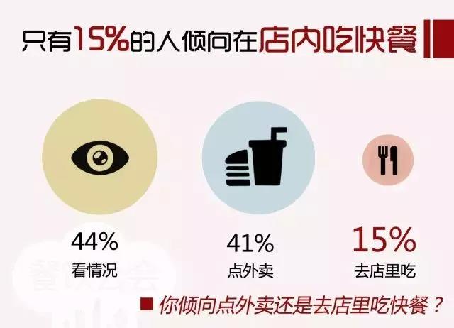 值得注意的是,33%的人表示他们的快餐消费在30-50元,这个数据接近整个餐饮业的人均消费。在消费升级的趋势下,快餐和正餐的界限正在消失。