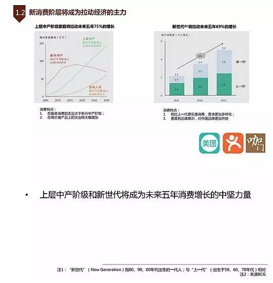 上层中产阶级家庭将拉动未来五年75%的增长,“新世代”将拉动未来五年69%的增长。