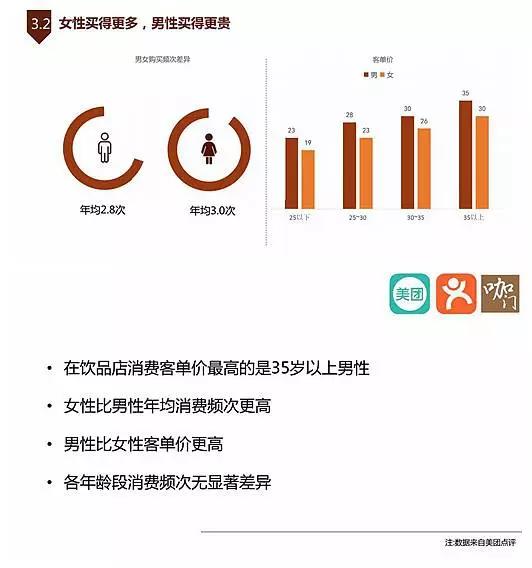 1)男性年均购买频次大概2.8次,女性3.0次;