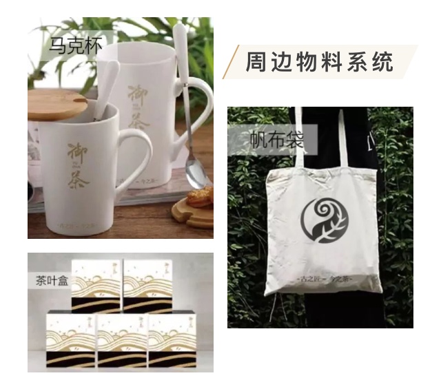 设计元素采用极具东方韵味的圆+水纹+太极以及品牌属性茶叶这四大元素作为设计原型进行变形重组,突出御茶健康活力的特性,同时也象征御茶品牌生生不息。