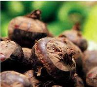 莎草科荸荠属浅水性宿根草本,以球茎作蔬菜食用。古称凫茈(凫茈),俗称马蹄,又称地栗,因它形如马蹄,又像栗子而得名。称它马蹄,仅指其外表;说它像栗子,不仅是形状,连性味、成分、功用都与栗子相似,又因它是在泥中结果,所以有地栗之称。荸荠原产印度,在我国主要分布于江苏、安徽、浙江、广东等水泽地区。荸荠冬、春季挖掘上市。荸荠是其地下匍匐茎先端膨大的球茎。球茎扁圆球形,表面平滑,老熟后呈深栗壳钯或枣红色,有环节3~5圈,并有短鸟嘴状顶芽及侧芽,肉为白色、质地脆嫩,多汁而甜。