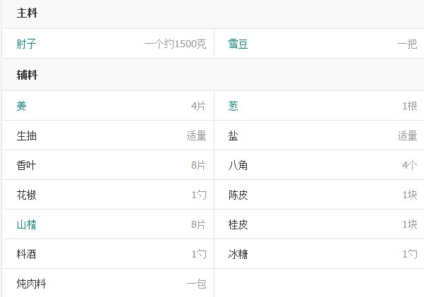 5. 锅中放入肘子,放入各种调味料,放入雪豆。加开水至汤汁基本能浸没肘子。