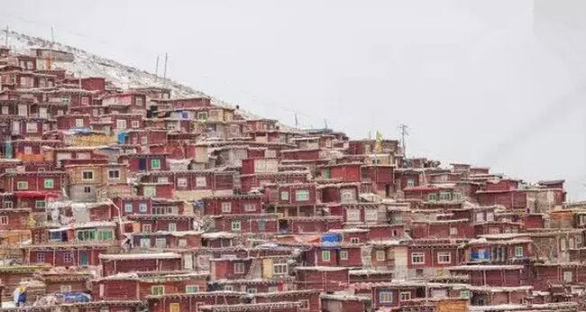 色达位于四川省甘孜藏族自治州东北部,世界上最大的藏传佛学院也正位于此,这里的僧舍很壮观,连绵数公里的山谷布满了密密麻麻的小木棚屋。色达已经飘雪,而五明佛学院依旧生机勃勃,趁着雪季探访色达,佛学院是另一番别有韵味的景象。