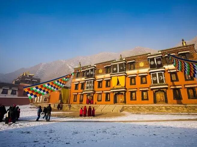 拉卜楞寺位于甘南夏河县西郊,是世界最大的藏学学府,寺院建筑风格粗犷大方,古朴典雅;寺内佛像、古籍、壁画种类繁多、琳琅满目。寺院周围被神奇俊秀的山川所包围,还弥漫着浓郁的藏族风情,使得它显得特别的神秘。近处的草原,远处的神山,到处白茫茫一片,别有一番景致。小贴士:每年正月十五,拉卜楞寺前将有一排排一簇簇的酥油灯整列,整个寺院将热闹非凡。