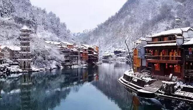凤凰古镇有着“中国最美的小城”之誉和“画乡”的美称。在这里有很多古街遗迹,无论是沱江河边的吊脚楼,古朴优雅的石板街,还是迟暮后灯火阑珊的酒吧一条街,都值得我们去驻足。大家因为沈从文而知晓凤凰,却不知冰雪中的凤凰更加美丽动人。冬季里,凤凰古城的游人相对稀少,没有平日的喧嚣,是享受凤凰的最好季节,此时的凤凰纯净洁白,水墨如画。
