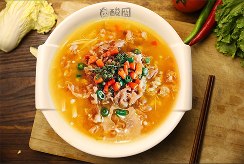 金黄的酸汤,加入香嫩的肥牛,加入了青红辣椒的色调,仿佛一幅优美的画卷,简直是味觉与视觉的双重体验。