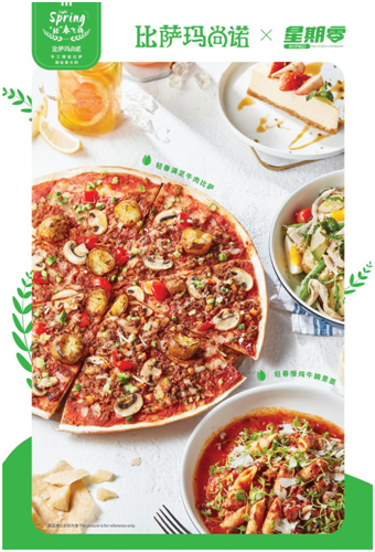 3 月 ,意式高端连锁餐饮品牌比萨玛尚诺,携手中国植物肉头部品牌星期零,在春天来临之际推出了主打健康轻热量的“轻春飞扬”系列。比萨玛尚诺以星期零的植物牛肉为食材,推出两款产品——售价 108 元的“轻春满足牛肉比萨”,以及售价 78 元的“轻春慢炖牛腩意面”。