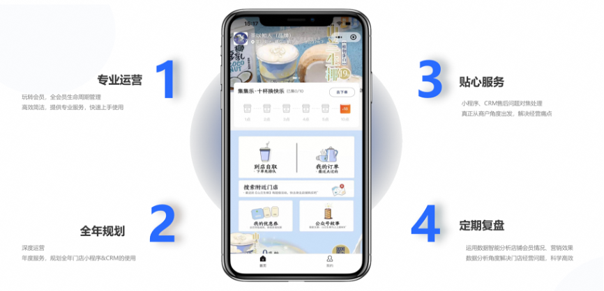 简而言之,就是能手把手的带领门店执行一次完整的、全流程化的营销活动,同时配置一周内7*12小时的优先服务,会有专人及时响应小程序和会员运营系统的使用问题。