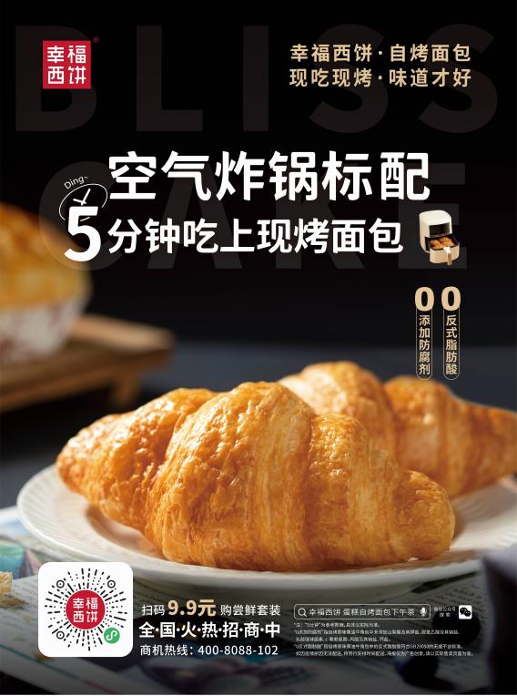 幸福西饼自烤面包致力于打造“家里的面包房”,只要有空气炸锅,“一开一放一关”160℃烤5分钟即可吃上热腾腾刚出炉的面包,是家庭用户早餐、白领办公室下午茶、宵夜解馋快捷方便的新选择。