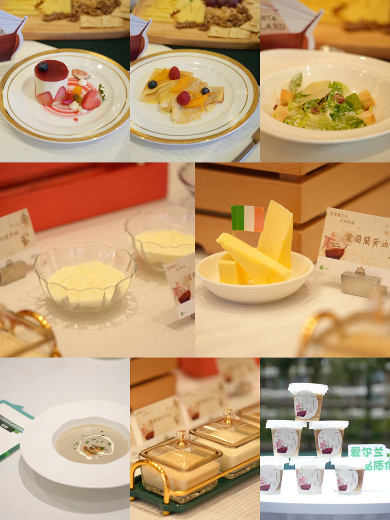 伴随着阵阵微风,现场仿佛围绕着翡翠绿岛在扬帆起航。由爱尔兰乳品原料制作的凯撒色拉、可丽饼、奶油蘑菇汤和香草草莓蛋糕等精美菜品令人回味;海盐厚乳拿铁和茉莉奶绿两款创意饮品则散发出独特的爱尔兰奶香,一口吸入倘若沉浸在爱尔兰绿如翡翠的天然牧场,意犹未尽。