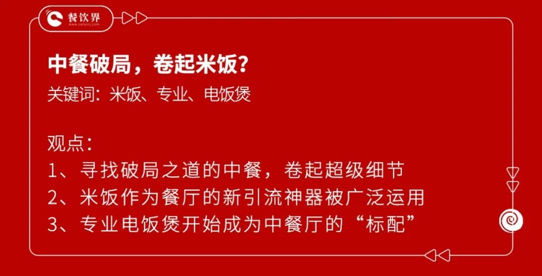 在这里,餐饮界(canyinj.com)观察到,寻找破局之道的中餐,已经卷起了超级细节,譬如——米饭。