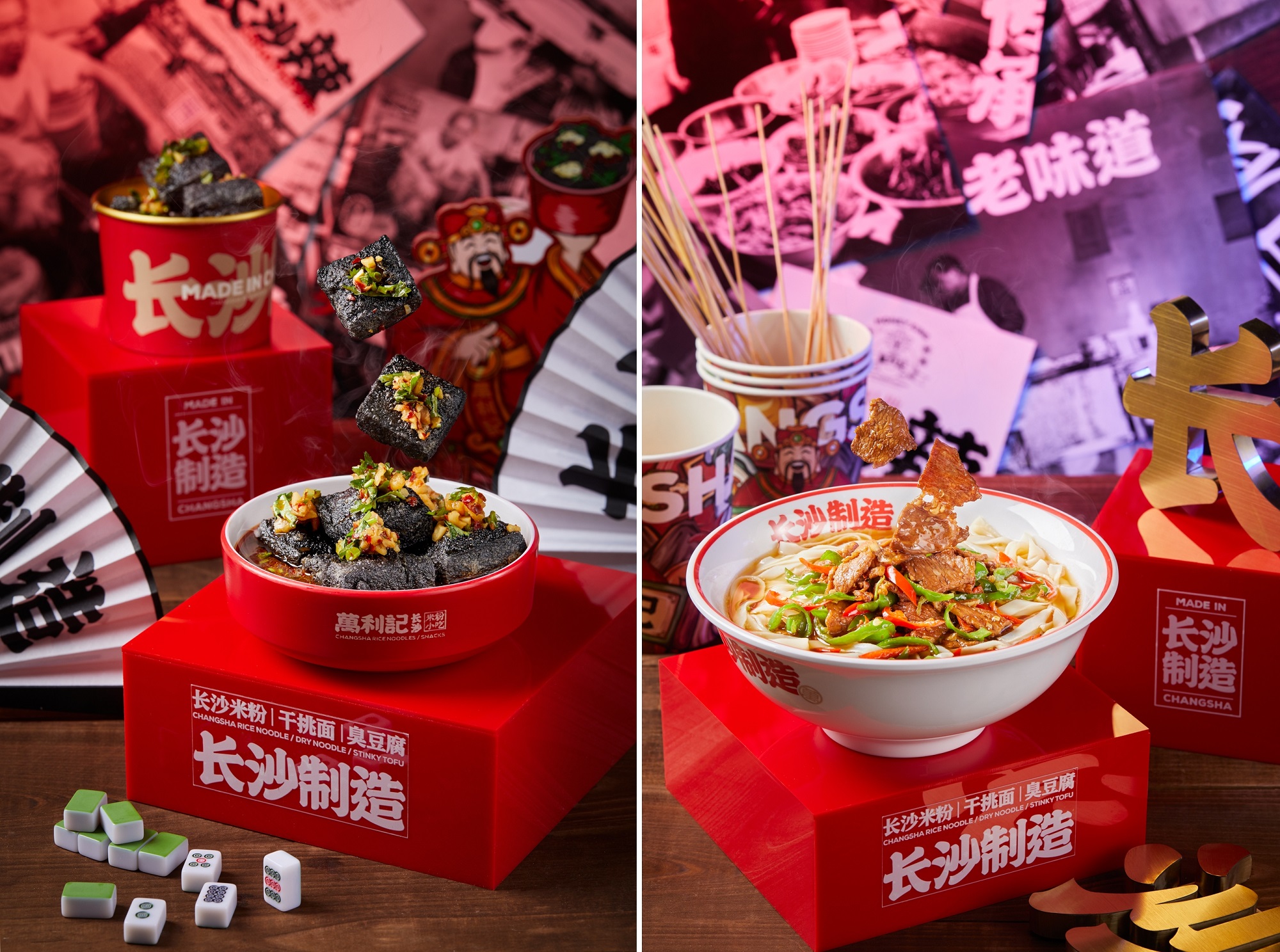 针对长沙米粉的品牌化,万利记对长沙米粉小吃进行了一系列的升级和改造。比如IP形象打造,万利记塑造了具象化的品牌符号——财神爷形象,以便于让消费者对品牌产生更清晰的印象;再比如消费体验升级,背靠购物中心迎合年轻人的消费习惯,是万利记升级消费体验的第一步,与此同时,万利记还在场景、餐具、工装等设计中融入国潮元素,以激发年轻人的打卡欲。